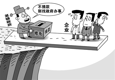 据报道,广西合浦县石康镇出了件“怪事”——原本财政拨款80万元的镇政府大院改造建设项目,加码变为耗资800多万元。卖地筹款超过500万元仍填不了缺口,当地就靠企业“捐资”:24家企业共“认捐”125.1万元,最高捐资20多万元……据捐款人反映,镇政府就捐款事宜召集企业开了至少两次座谈会,政府工作人员在会上明确表示,不捐款的企业今后就不要找政府帮忙办事,并要求企业在接受媒体采访和纪委调查时承认主动认捐。