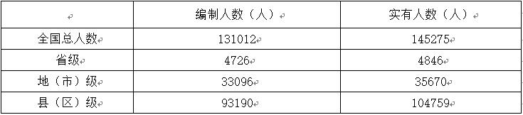 表1: 2021年各级经办机构人员编制与实有人员数量