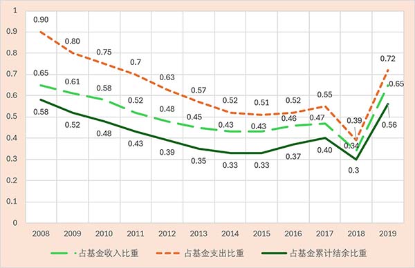 图1:2008-2019年我国社保经办机构经费支出情况(%)