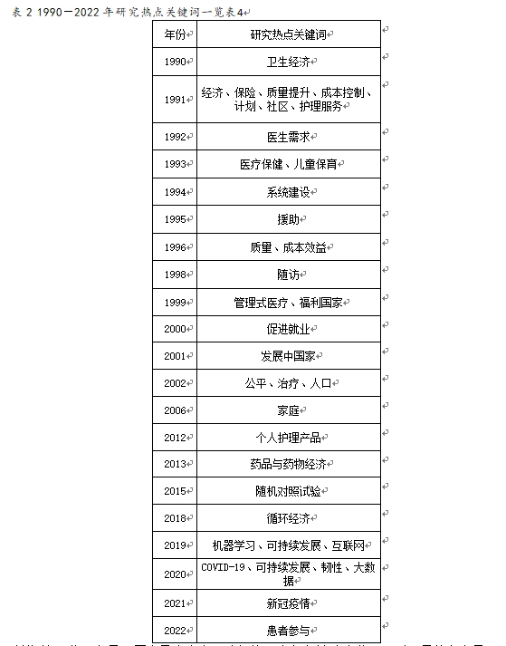 笔者采用文献计量法和科学知识图谱法,通过CiteSpace软件对Web of Science 核心数据库中1990 — 2024年间涉及照护经济、无酬护理等关键词的13855篇国际文献进行分析,通过LLR算法获得国外研究的关键词聚类图谱,共生成了8个聚类且效果十分明显,不同类团之间存在重叠情况、相互关联密切,涉及心理照护、健康经济、医疗保险、护理工作、循环经济、共享经济、可持续发展、照护对象等领域(见表2)。通过分析发现:卫生经济、广义医疗的兴起,制造业大龄冗员向照护经济的迁徙,互联网、大数据和机器学习等对发展照护经济的支撑,以及其他新生社会问题和患者参与度等成为研究的新焦点。
