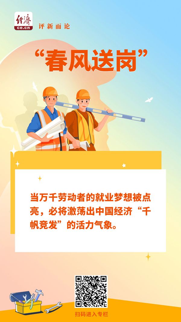 “春风送岗”,“职”引未来,“职”达幸福。当万千劳动者的就业梦想被点亮,必将激荡出中国经济“千帆竞发”的活力气象。(中国经济网评论员 子房先生)
