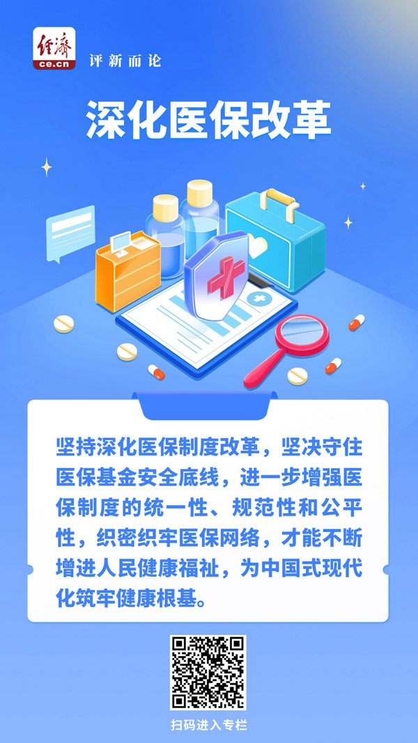 建设健康中国,既要靠医疗卫生服务的“小处方”,更要靠社会整体联动的“大处方”。聚焦人民群众反映的堵点难点问题,坚持深化医保制度改革,坚决守住医保基金安全底线,通过多措并举、多方合力,进一步增强医保制度的统一性、规范性和公平性,织密织牢医保网络,才能不断增进人民健康福祉,为中国式现代化筑牢健康根基。(中国经济网评论员 邓浩)