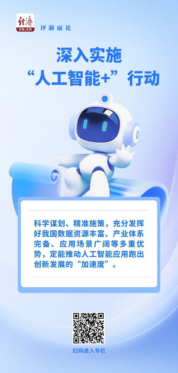“人工智能+”要发挥的是乘数效应。科学谋划、精准施策,充分发挥好我国数据资源丰富、产业体系完备、应用场景广阔等多重优势,定能推动人工智能应用跑出创新发展的“加速度”,为经济社会发展注入澎湃动能。(中国经济网评论员 梁瑜)