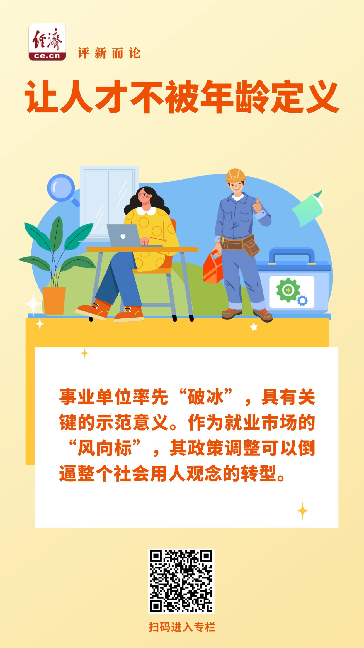 35岁从不是能力的“保质期”,50岁更不该是职场的“终点线”。事业单位对招聘年龄的松绑,正是对“人尽其才、才尽其用”理念的生动践行。就在最新发布的公告中,2026年国考也正式放宽报考年龄,无疑释放出鲜明的政策信号。当年龄不再成为奋斗的“拦路虎”,当每个劳动者都能凭实力找到舞台,必将为社会发展注入更持久、更多元的活力。(作者:中国经济网 刘江)