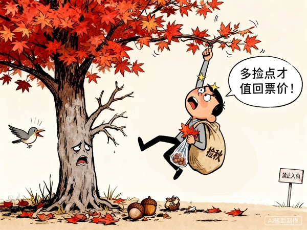 秋意渐浓,“捡秋”一词也逐渐成了网络热词。“捡秋”原意是指秋收后农民捡拾田间遗落农作物的传统农事活动,现在已经发展成捡拾落叶、坚果等活动。不过,有些人却在折枝踏草,将它变成破坏自然环境、满足个人私欲的不当行为。“捡秋”不要“伤秋”,才能为自然留住美景。(图文:许子杰)