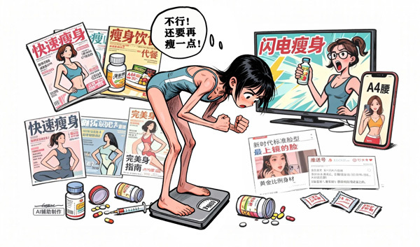 当下,瘦身叙事持续“洗脑”,给“胖”贴上负面标签。不少人将“瘦即美”奉为圭臬,产生身材焦虑。这种单一审美折磨身心,催生极端减肥瘦身行为,值得警惕。只有打破洗脑式瘦身叙事,拥抱多元健康审美,方能守护身心自由。(图文:张博森)