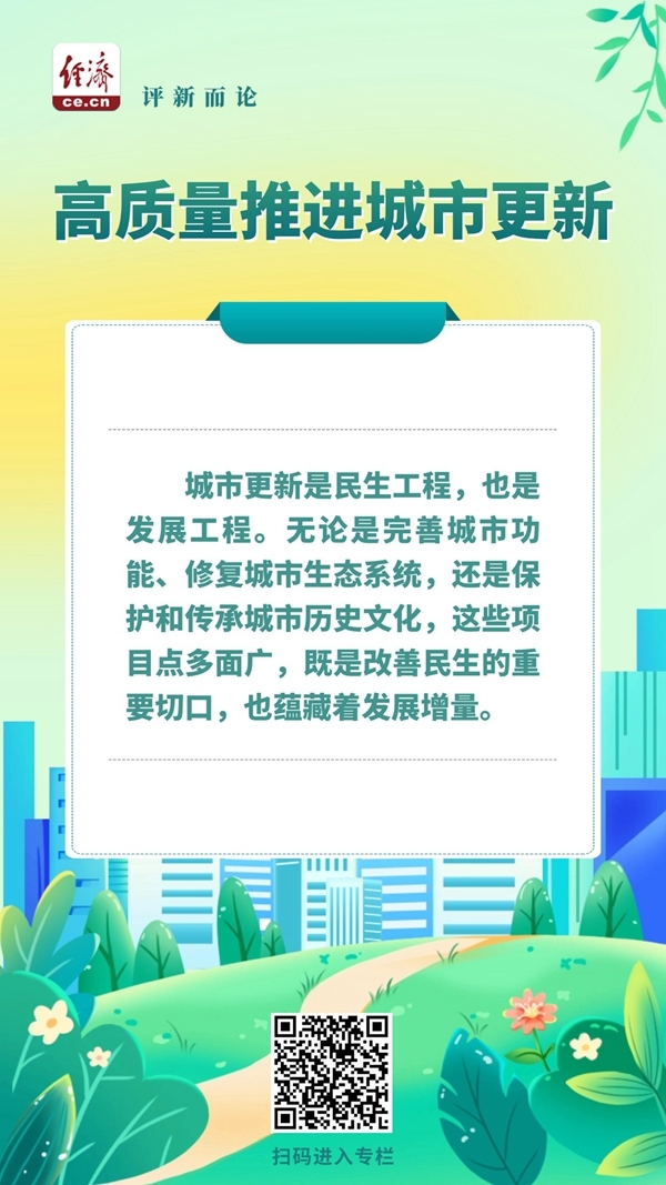 “十五五”规划建议提出“大力实施城市更新”。近日召开的中央经济工作会议也强调要“高质量推进城市更新”。在外部环境复杂多变、国内需求有待进一步释放的背景下,城市更新能够发挥拉投资、扩内需、稳增长的重要作用,有效赋能经济社会高质量发展。