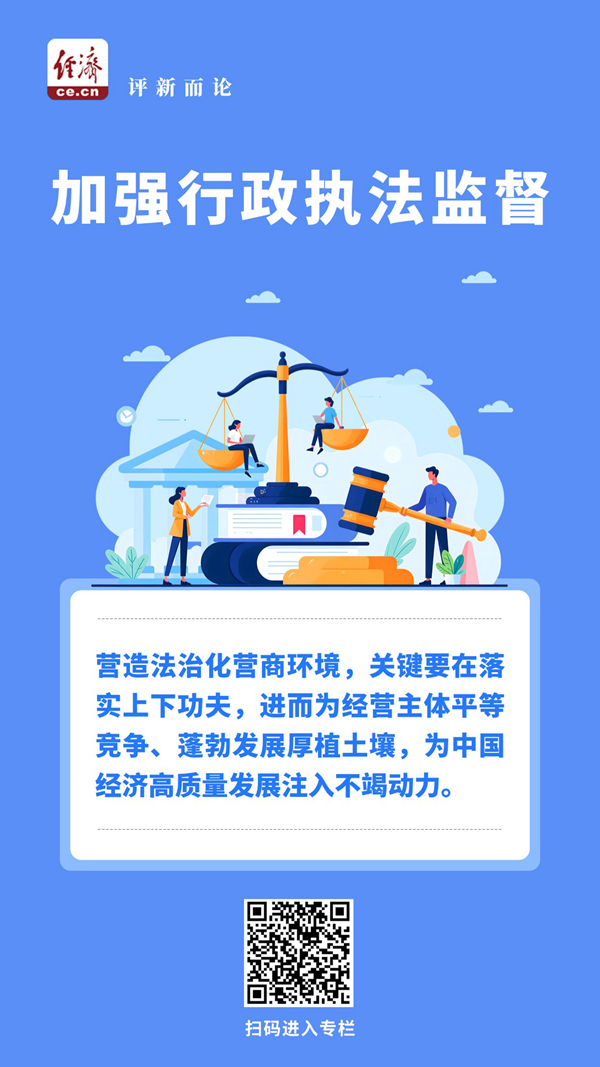 法治是最好的营商环境。行政执法监督是上级行政机关对下级行政机关的行政执法工作进行的内部层级监督。相比于外部监督,这种内部监督具有信息获取更直接、专业性更强、效率更高的特点。《条例》将近年来行政执法监督工作,特别是规范涉企行政执法专项行动中的实践经验上升为法律制度,强调全方位、全流程监督,并对滥用职权、任性执法等行为严肃追责问责。这有助于进一步厘清执法权责边界,确保行政权力始终在法治轨道上运行。
